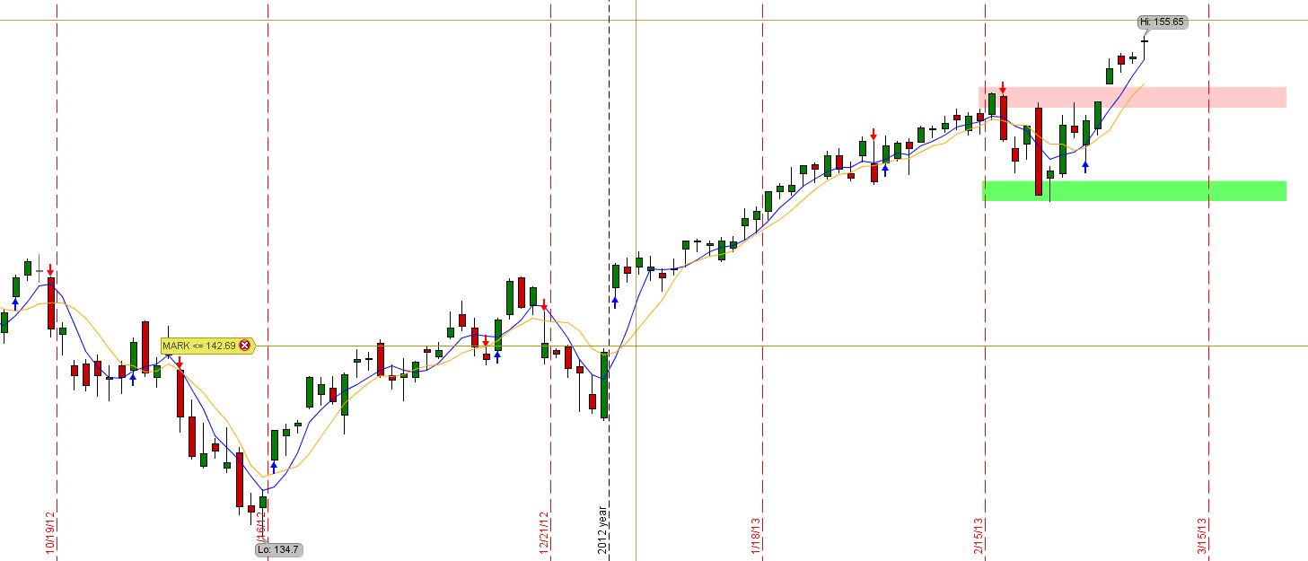 Chart Read: The doji from Friday could be a sign that we are going to see a pull back. Doji candles are a sign of indecision. I am watching Monday for a possible move below the low of this doji which will give us confirmation that we are going to see the pull back. The high from Friday will act as resistance. If we break this top then who knows where we will find resistance. No buyers we are coming down. This is the higher odds. Monday I want to see price at resistance and get a strong pattern signaling down. If price is sitting on the pivot or S1 then I will be careful to go long. Happy Trading…