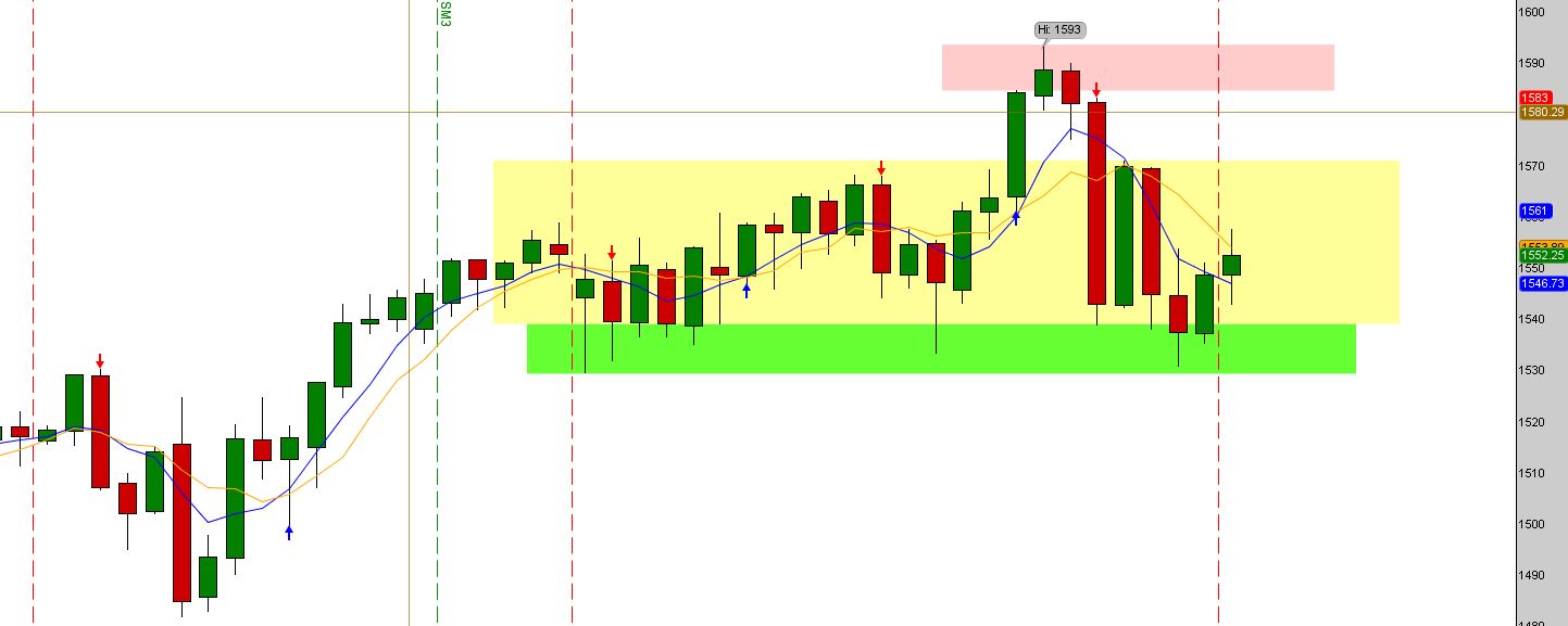 We are in the zone. The yellow area is a consolidation area that we tried to break week before last. Problem is we just came right back into the ZONE. You can see how the support area (green) is holding up. We may try and form a head and shoulders pattern. Can you see it left shoulder, head and right shoulder may be forming. Critical resistance is at the top of the yellow box. Happy Trading!!