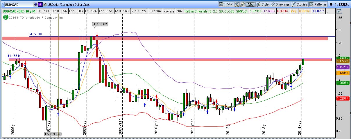 USD/CAD Looking like this is going higher. The strength into this spot is moving quickly. If the resistance does not hold, next stop is the area above. Oil is not helping and it has a lot to do with what happens in Canada. So we shall see I would want to have confirmation of a break out (long) or a pull back (short). My thought is the break out. We shall see.